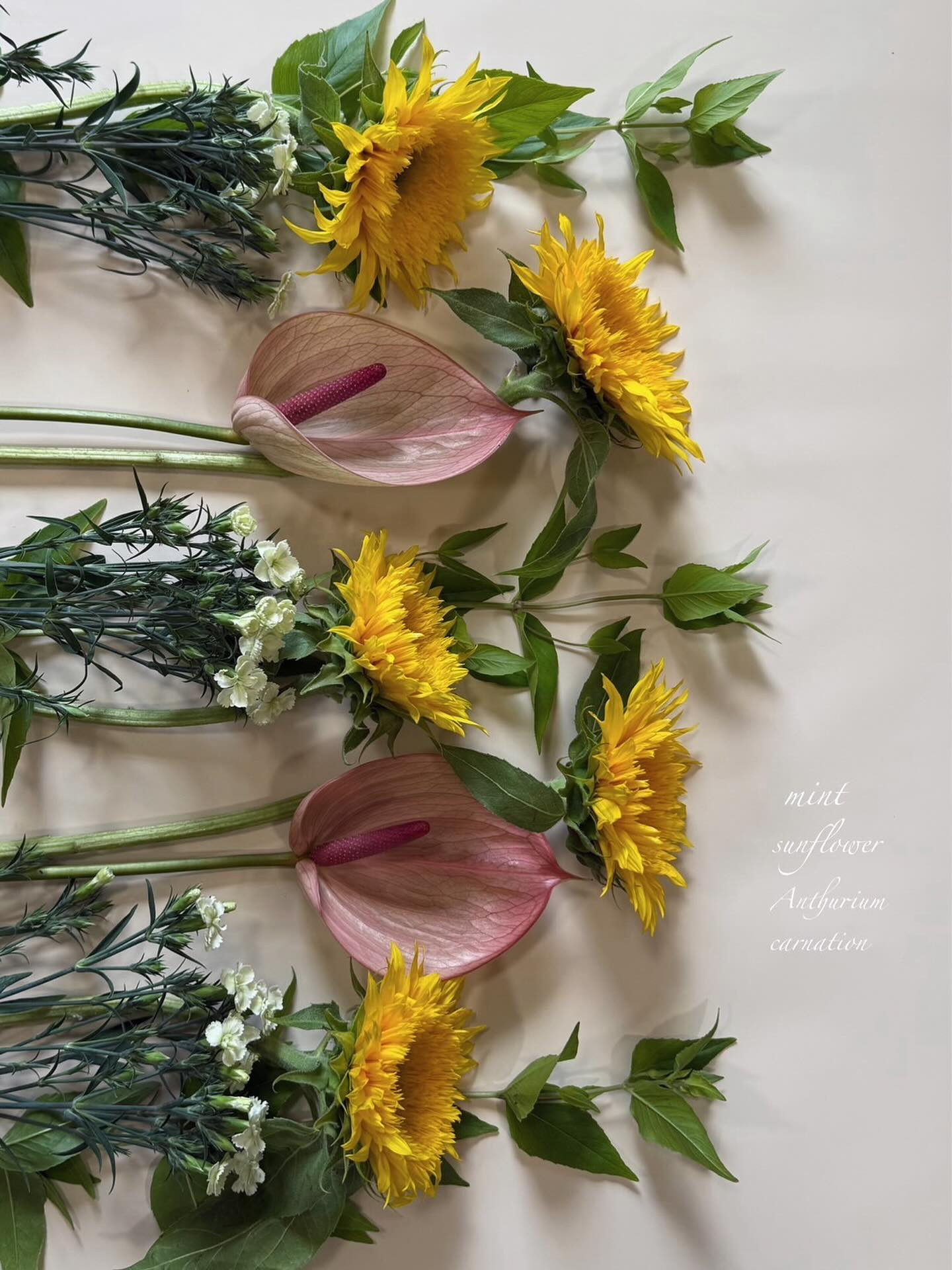 #向日葵 #カーネーション #アンスリューム #マウンテンミント