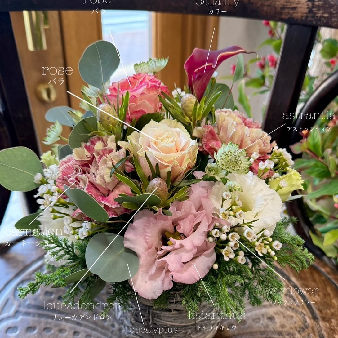 当店の人気商品のアレンジメントで色々な種類のお花とお客様の思いをギュッと詰め込んでꕤ︎︎·͜· ︎︎